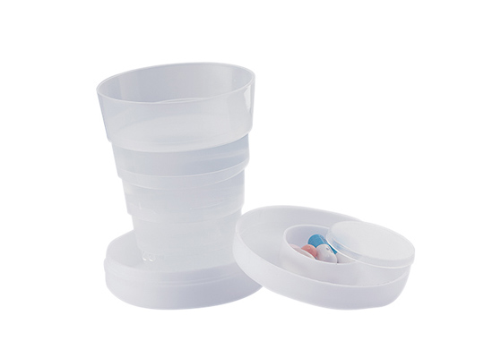VASO PASTILLERO (Pastillero con tapa y vaso retráctil.)